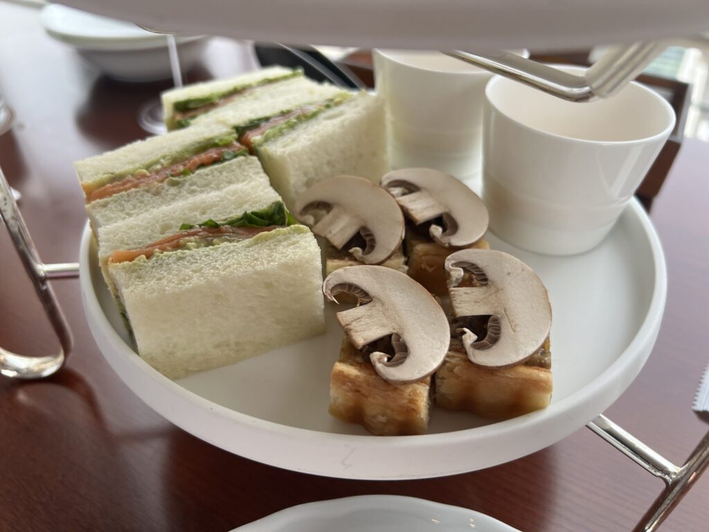 セイボリーの次くらいにスコーンを食べて、上段に進むと食べ進めやすかったかな?と思いました。